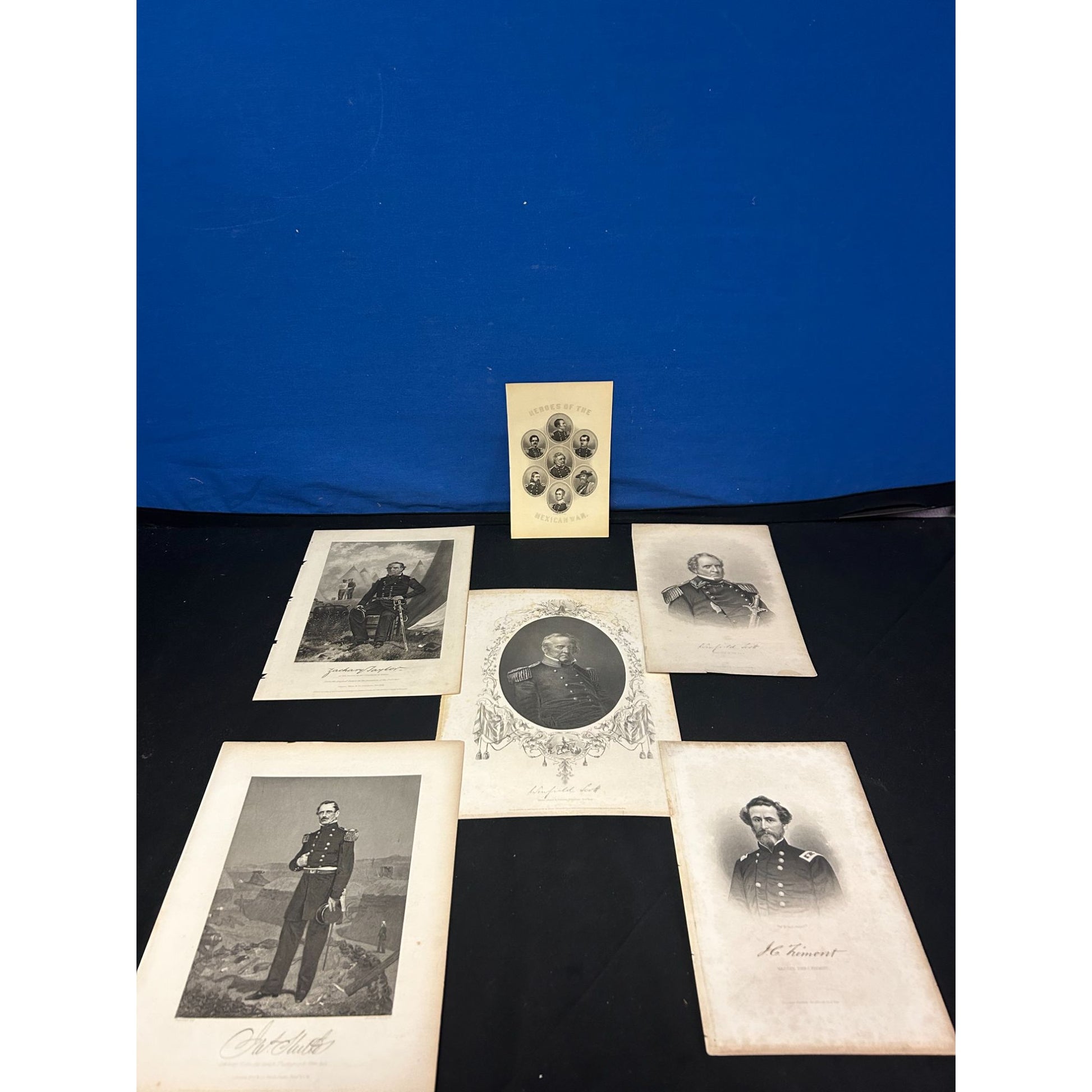 This collection features six antique Civil War portraits showcasing detailed depictions of military leaders and officers (Heros of the Mexican War), each rich in historical significance.