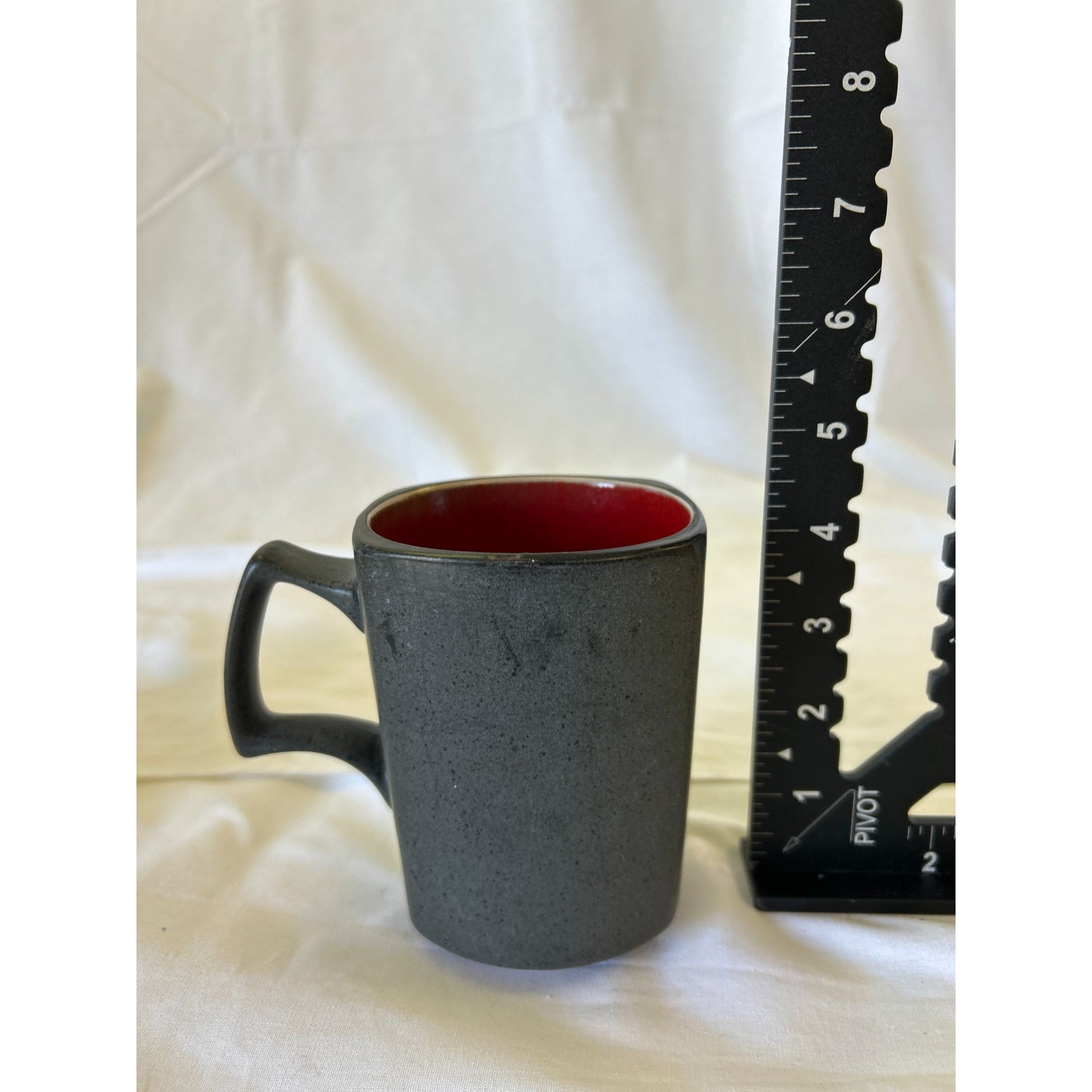 This sturdy ceramic mug offers a modern design with a sleek gray exterior and vibrant red interior, perfect for enjoying your favorite beverages.