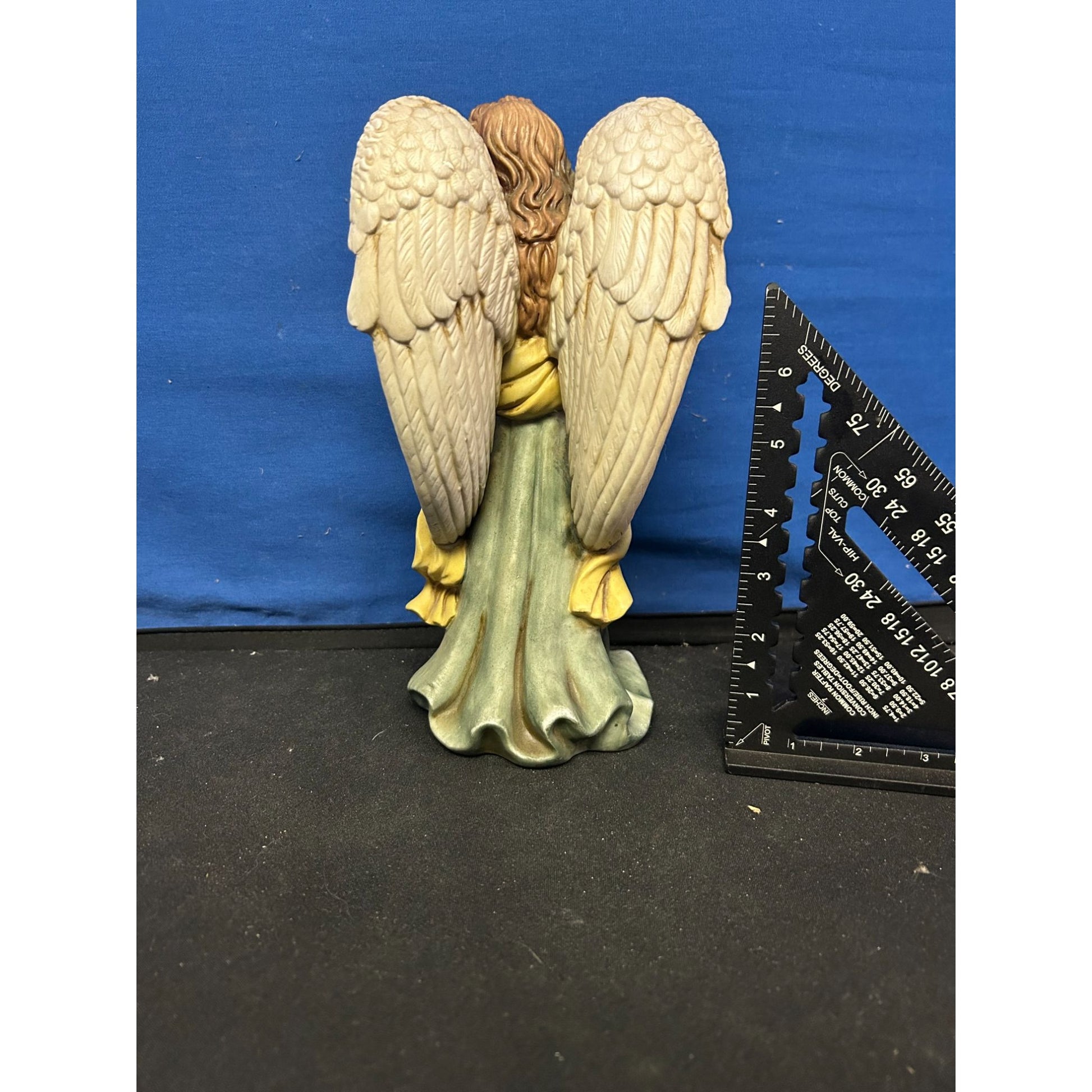 Hand-Painted Angel Figurine With Trumpet & Flowing Gown 7.5" Resin Collectible Statue