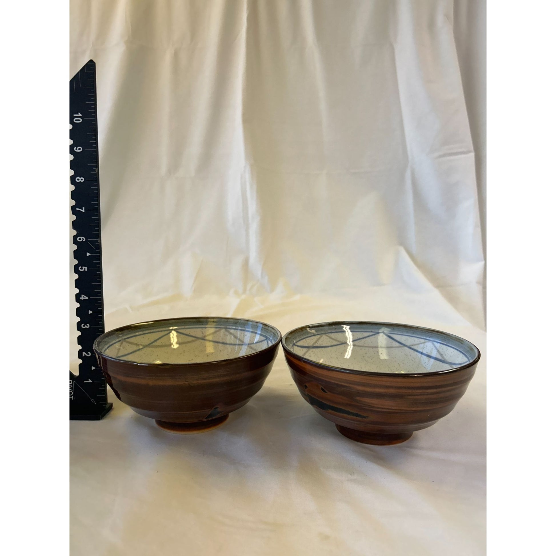 Handcrafted Ceramic Japanese Tea Bowls With Geometric Pattern & Glossy Finish - Set Of 2