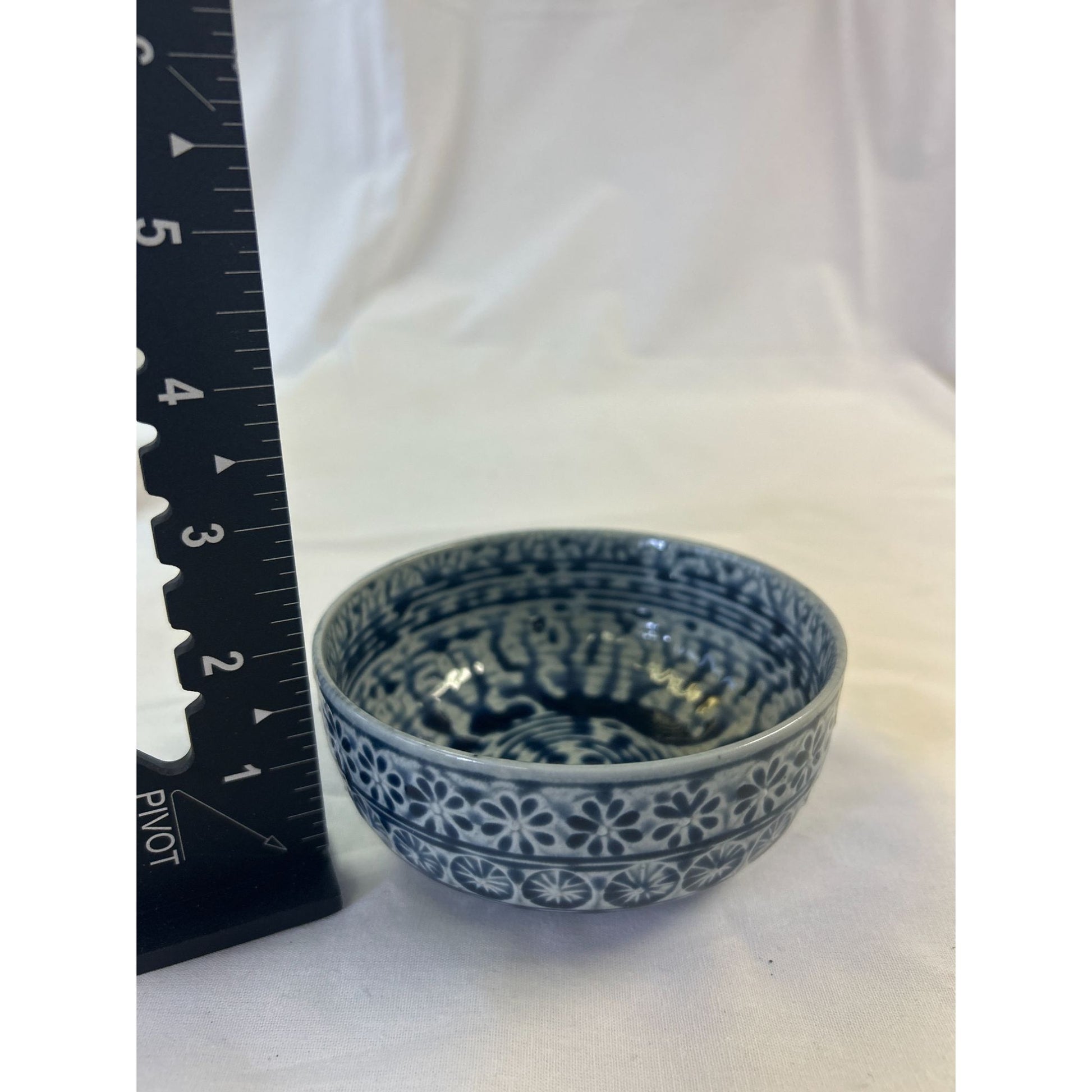 Handmade Blue & White Ceramic Bowl With Floral & Wave Patterns