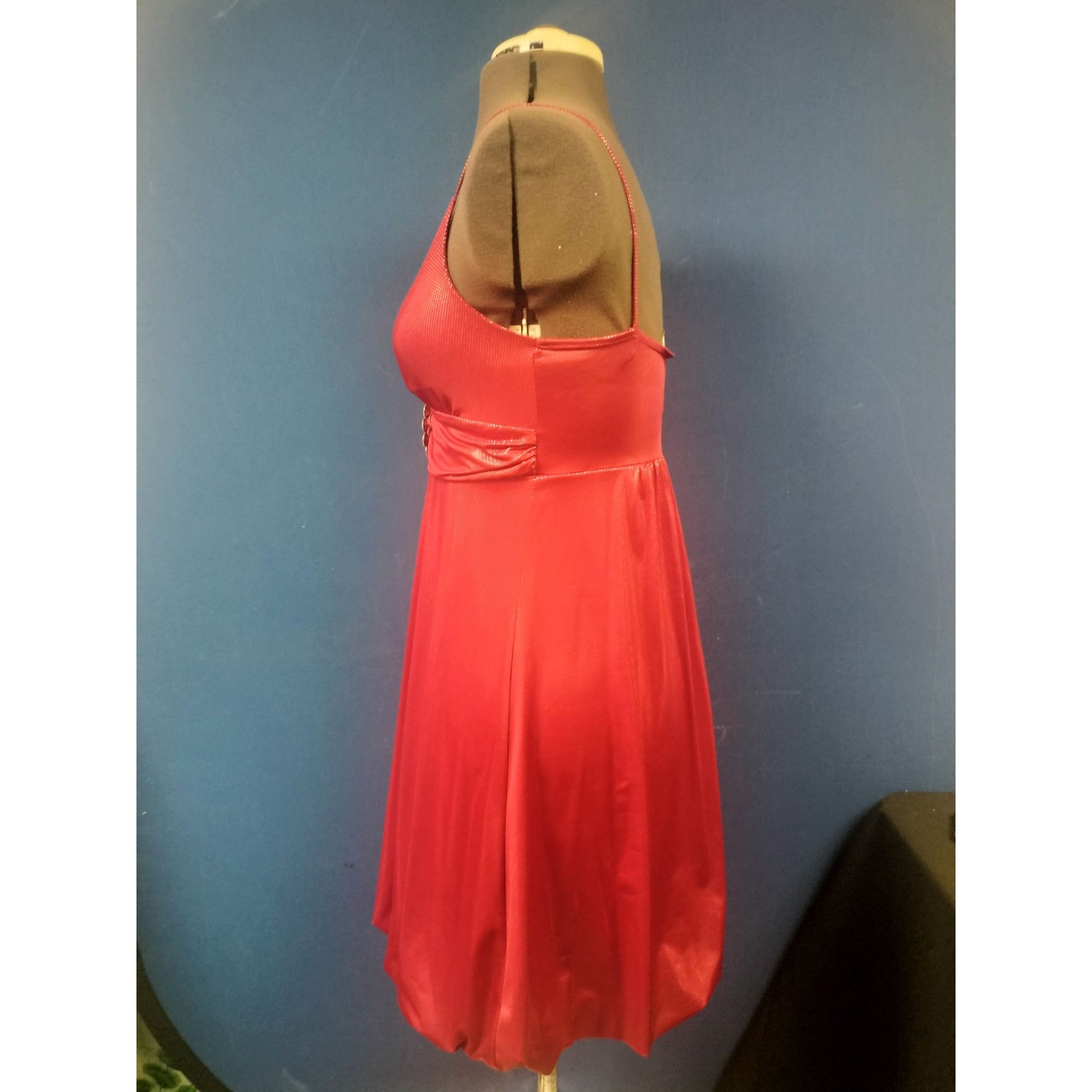 Red Spaghetti Strap Party Dress With Rhinestone Accent By Trac Small Polyester Metallic Womens