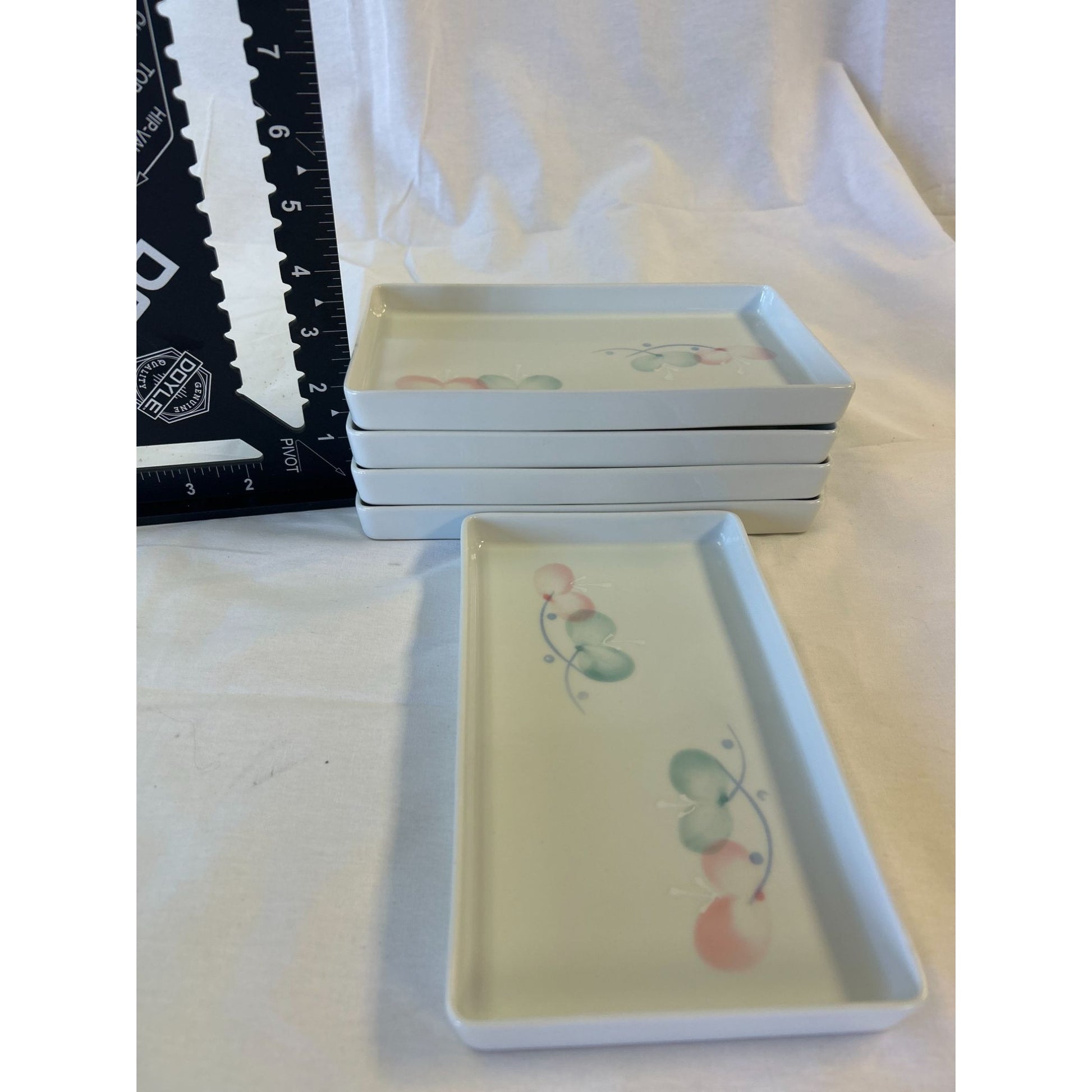 Set Of 5 Rectangular Ceramic Plates With Pastel Floral Design