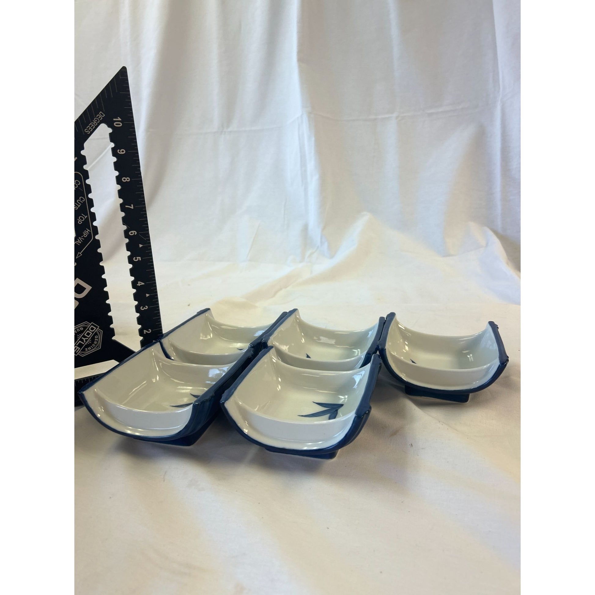 Set Of 5 Vintage Blue & White Ceramic Square Dishes With Handle Design