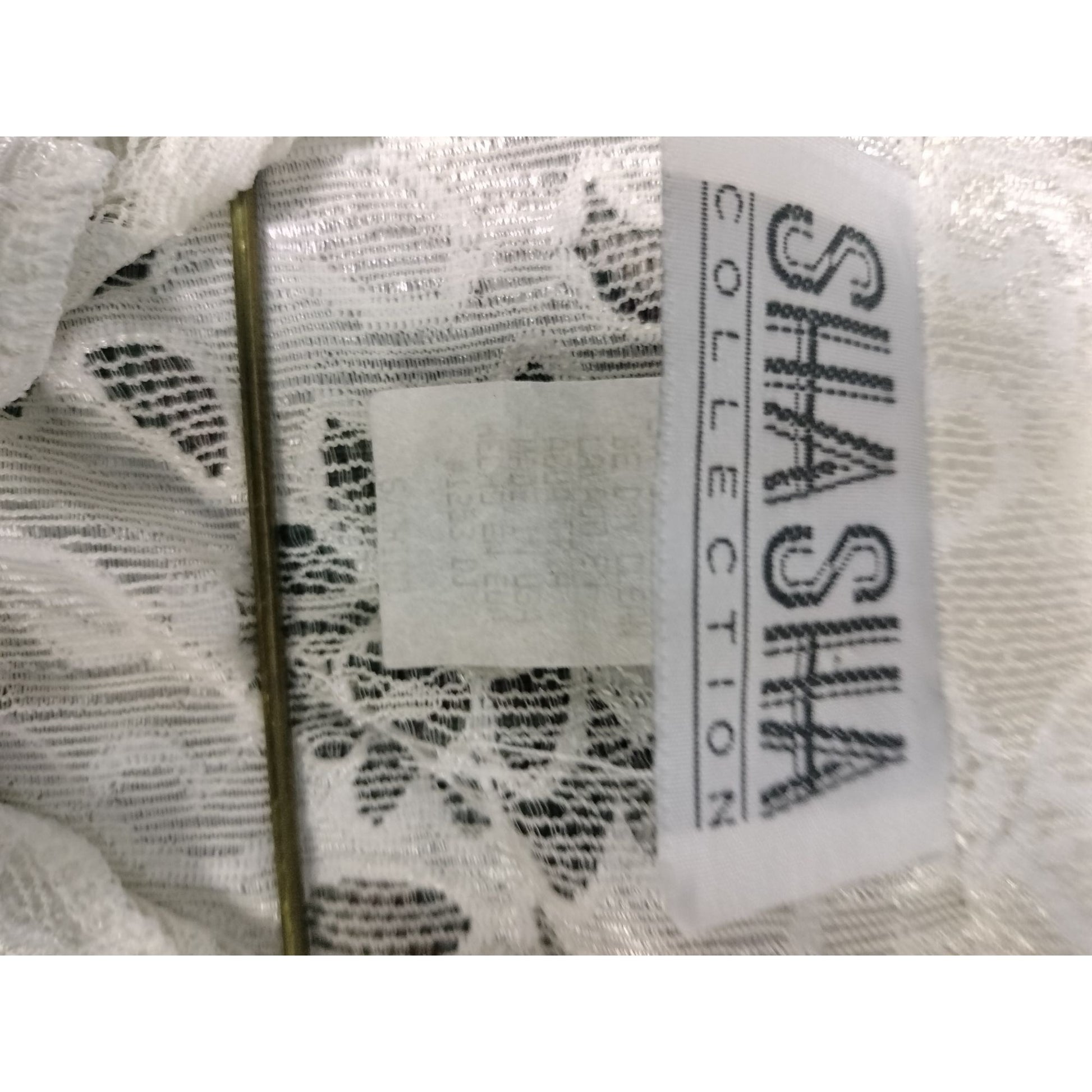 Shasha Collection Womens White Lace Button-Up Long Sleeve Blouse With Floral Sheer Design