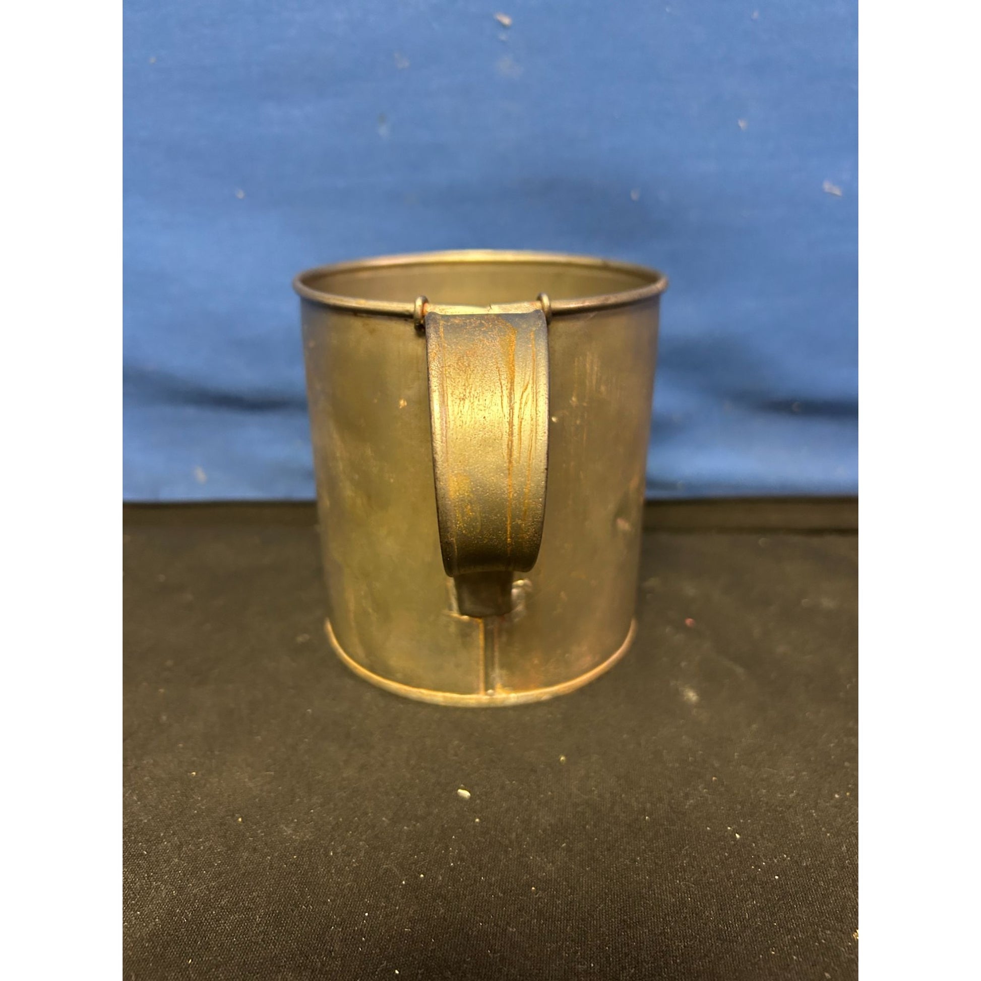 A sturdy brass camping mug, ideal for outdoor enthusiasts or collectors. Its timeless design offers durability and a hint of rustic charm.