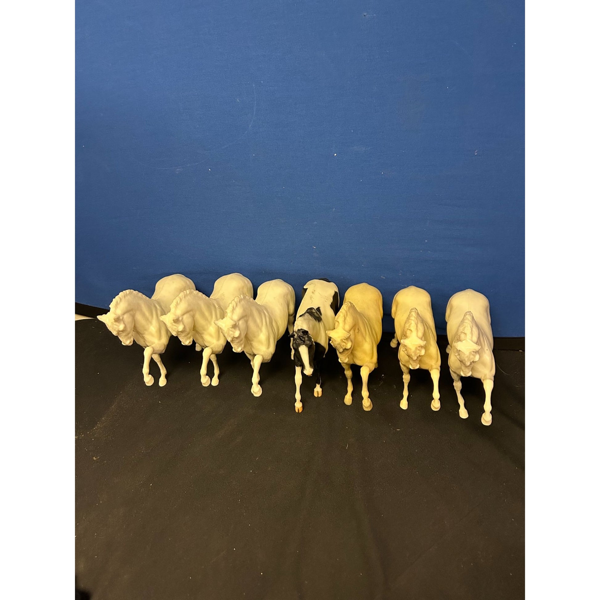 This set of seven Breyer miniature horse figurines offers a charming addition to any collection or display, showcasing intricate details and varied designs.