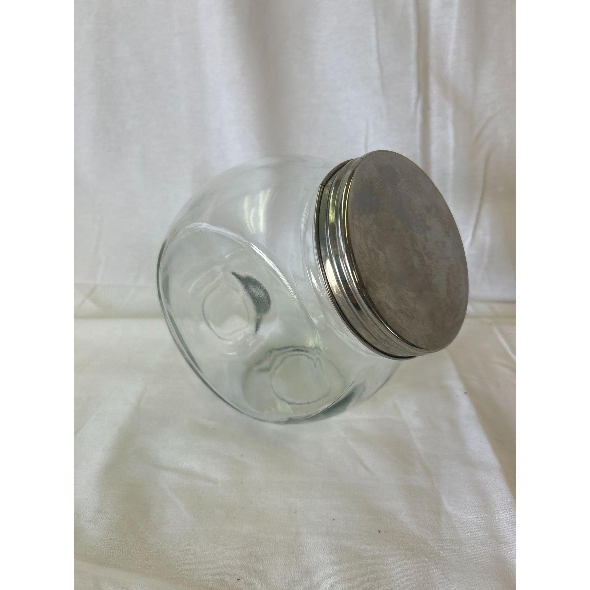 Vintage Clear Glass Cookie Jar With Silver-Tone Metal Lid