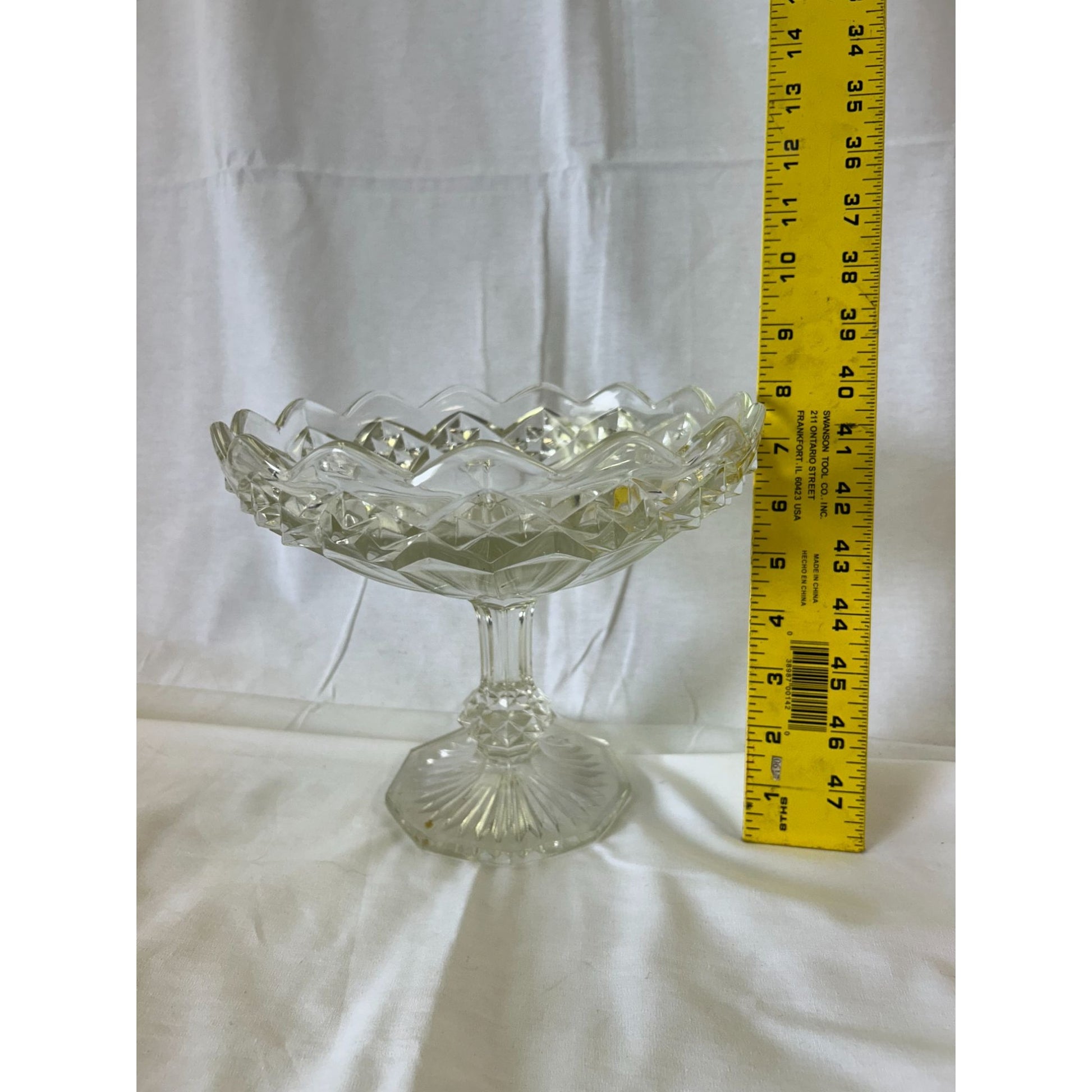 Vintage Crystal Glass Pedestal Compote Bowl With Starburst & Diamond Pattern