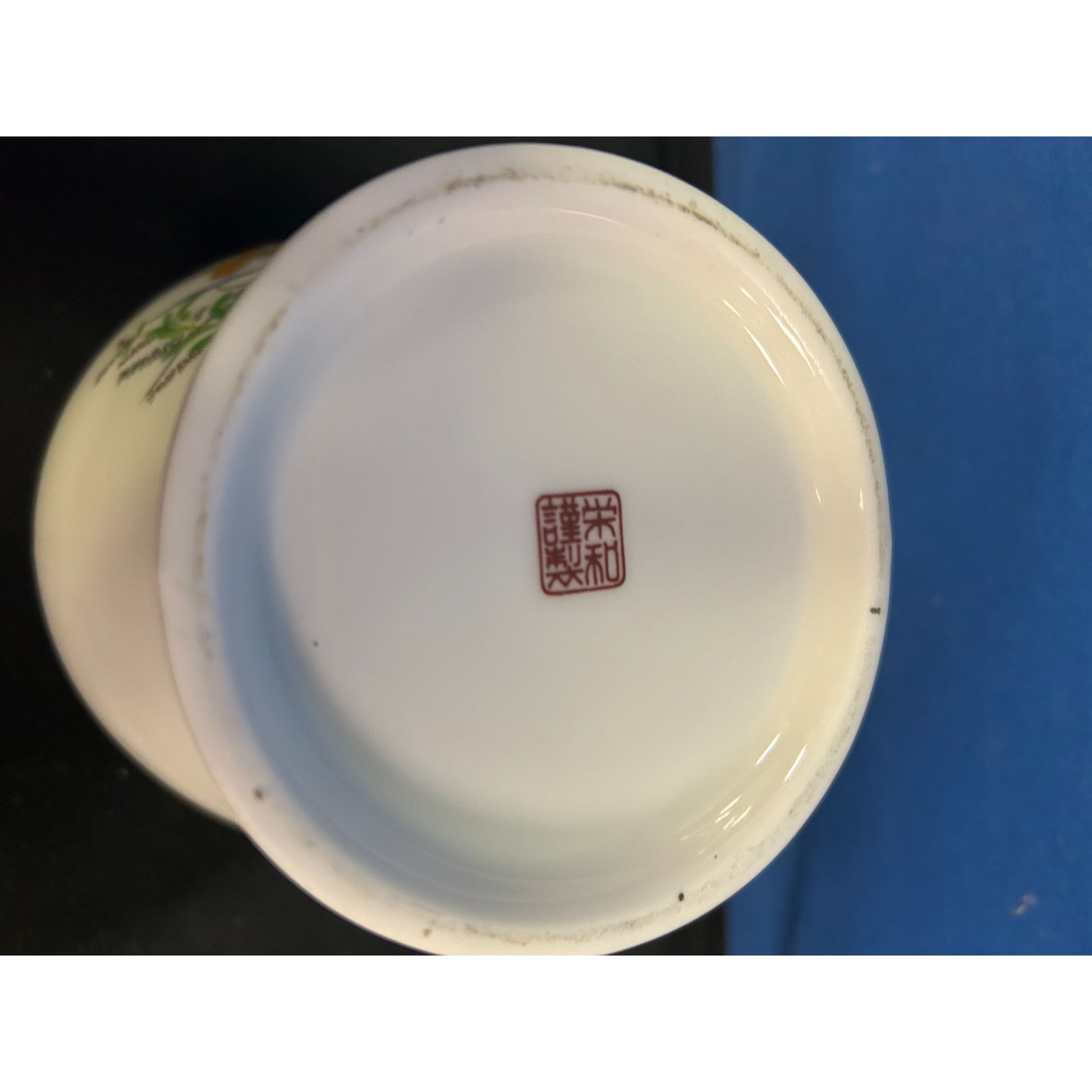 A charming porcelain ginger jar with a vibrant floral and butterfly motif. Ideal for decorative use or as a collectible piece.
